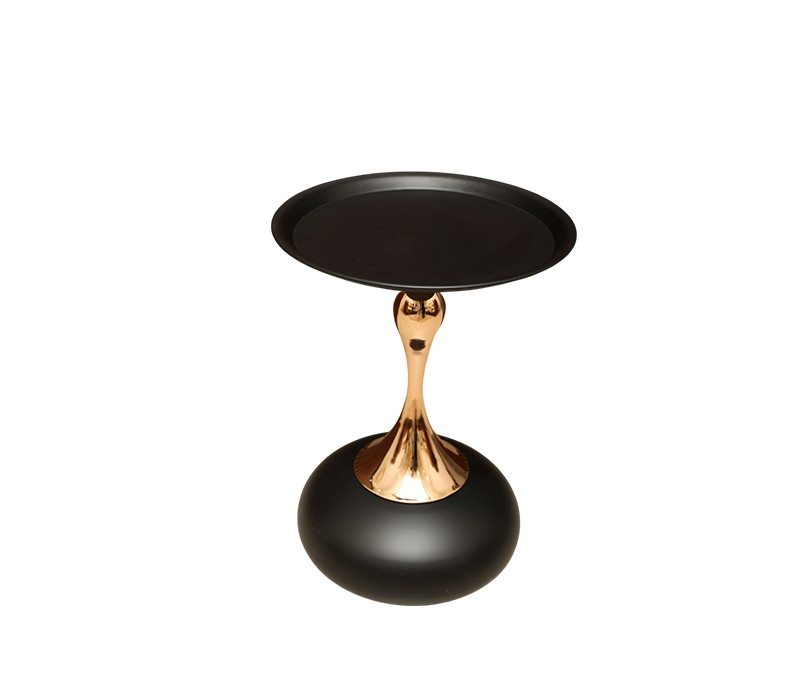 طاولة قهوة معدنية مع صينية ذهبية سوداء وحامل